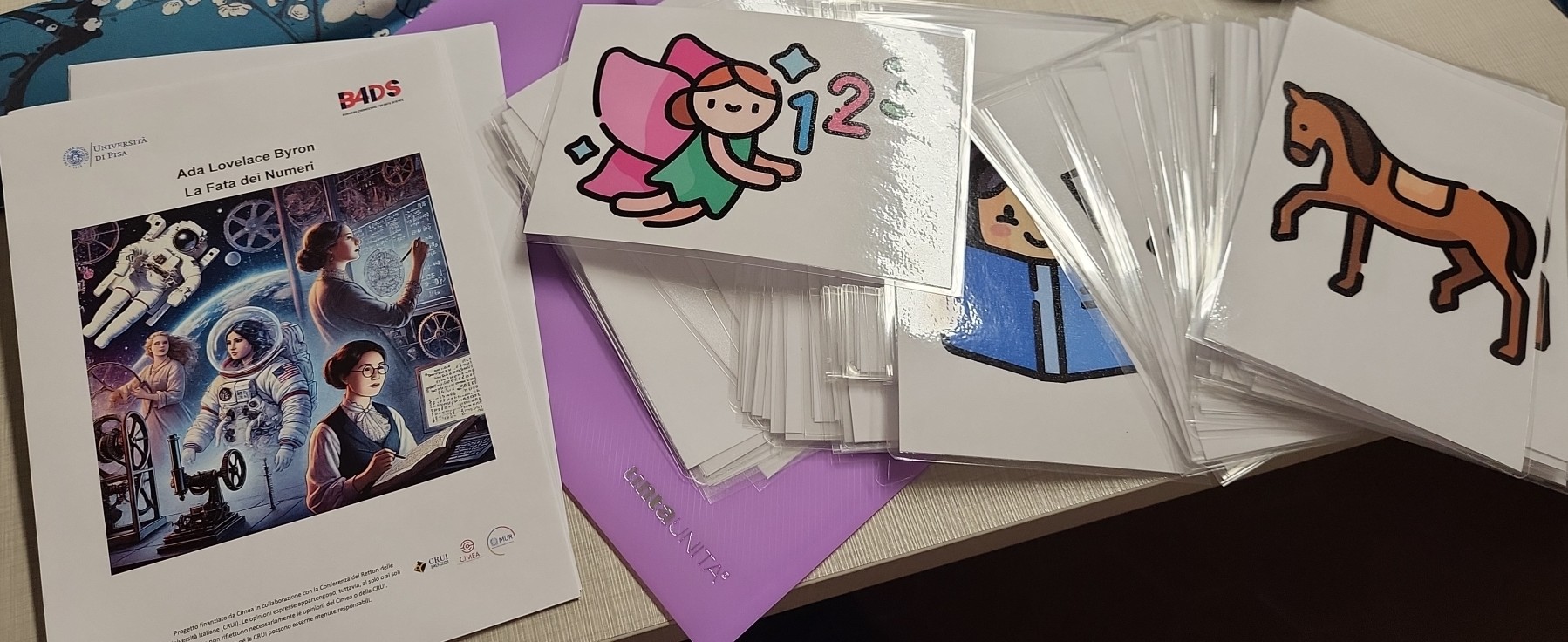 Un gioco con carte illustrate e racconti dedicato a bambine e bambini della scuola primaria per scoprire ed usare l’Intelligenza Artificiale Generativa. Insieme esploreremo la storia dell’informatica e della programmazione e sperimenteremo la creatività digitale. Attraverso una sessione di gioco e di prompt design, verranno generate immagini e testi con IA.