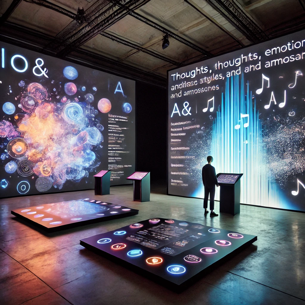 Nella prima postazione, il pubblico può contribuire con pensieri, frasi, immagini mentali o emozioni: da queste suggestioni condivise nasce una strofa, un testo originale generato dall’IA. Qui si osserva come il linguaggio artificiale tenta di trasformare il sentire umano in parole.